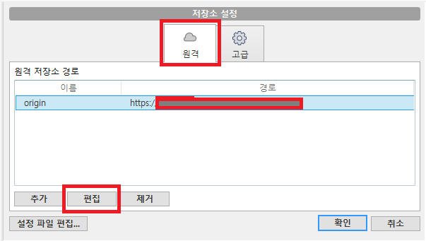 원격의 경로에 대해 선택하고 편집을 해 주자.